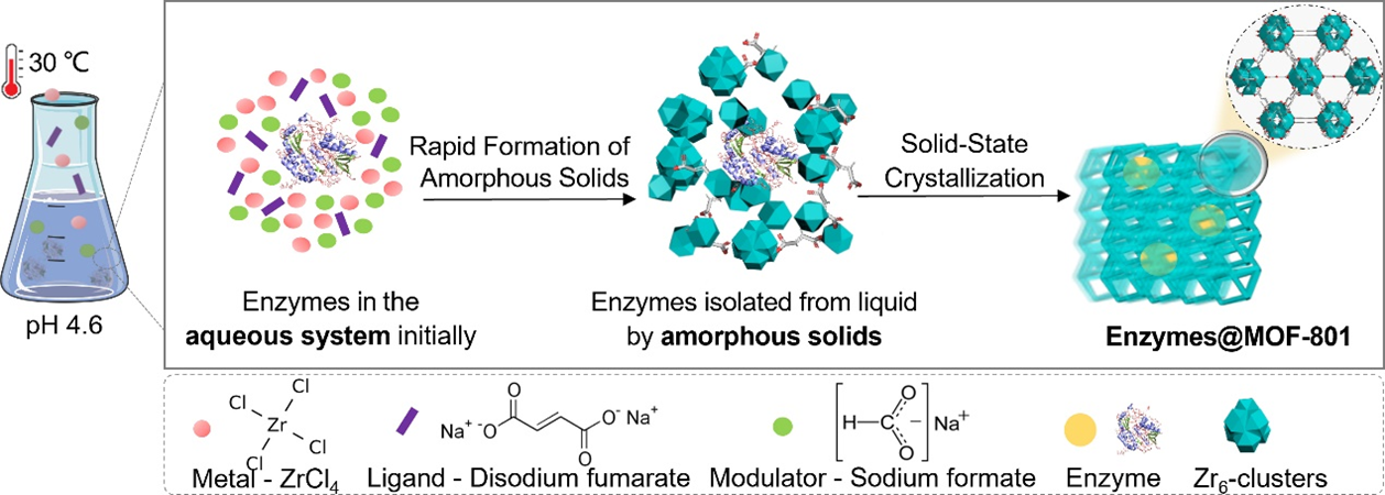 物质学院卓联洋课题组利用固态结晶策略成功在锆基MOFs中封装酶